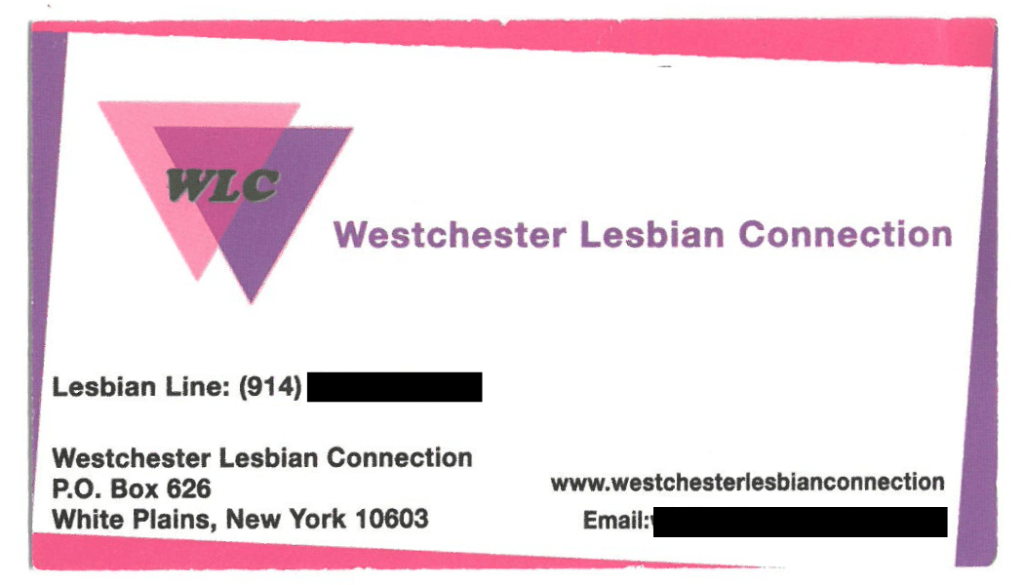 In the 1980s, she was instrumental in the creation of Westchester Lesbian Connection, following years of involvement with The Southern Westchester NOW’s Task Force on Sexuality and Lesbianism.