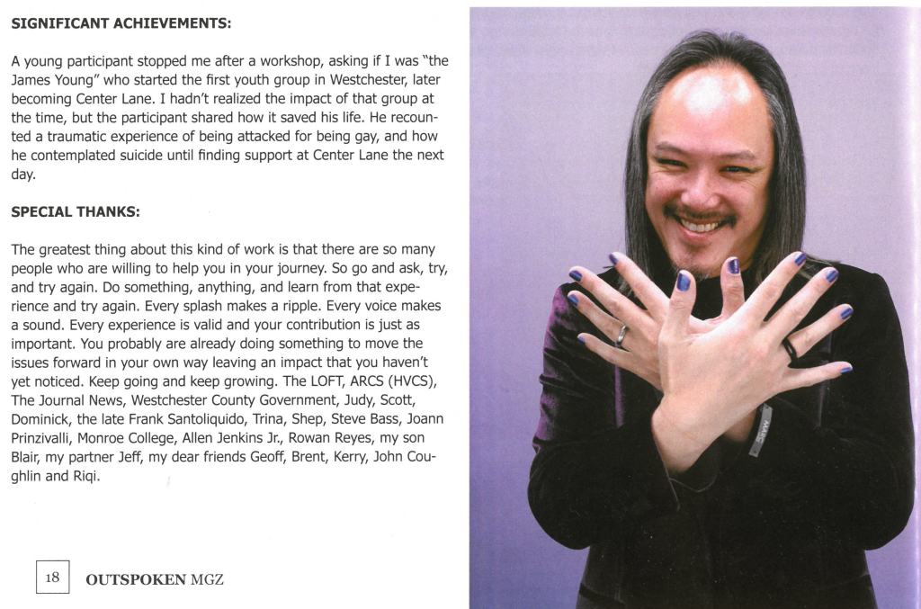 James Young was only nominally an adult himself when he first began working with LGBTQ+ youth in Westchester over 30 years ago. When he was 18 years old in 1992, he began Westchester’s first peer-to-peer LGBTQ youth group at the suggestion of his mentors at The LOFT.